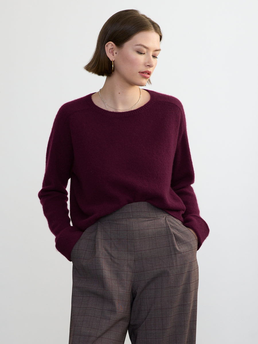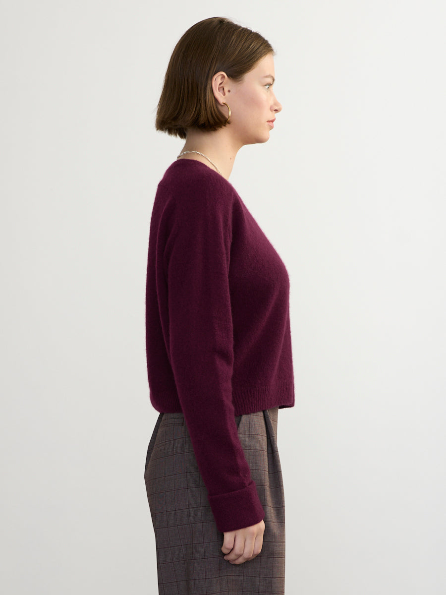 Featherlight and effortlessly luxe, this pullover is crafted from a dreamy blend of cashmere and silk. Rolled edges add a touch of undone charm, making it perfect for pairing with everything from floaty skirts to lived-in denim. It’s the sweater that makes you feel instantly pulled together, even when you’re keeping it casual.