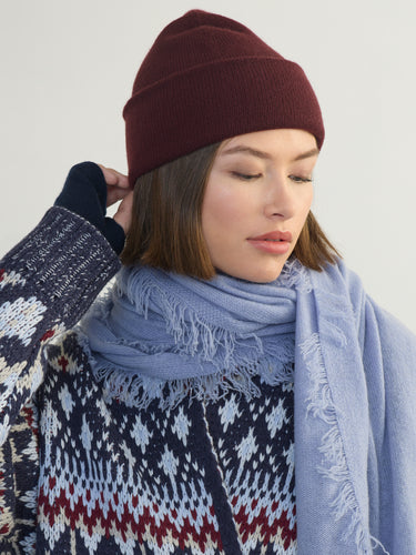 Expertly crafted from two layers of ultra-soft cashmere, it offers a perfect balance of warmth and understated luxury. The slim, tailored fit ensures a polished, modern silhouette, making it as chic as it is cozy. Ideal for evenings out or adding a touch of refinement to everyday wear, this beanie is a timeless accessory that adds texture to every ensemble.