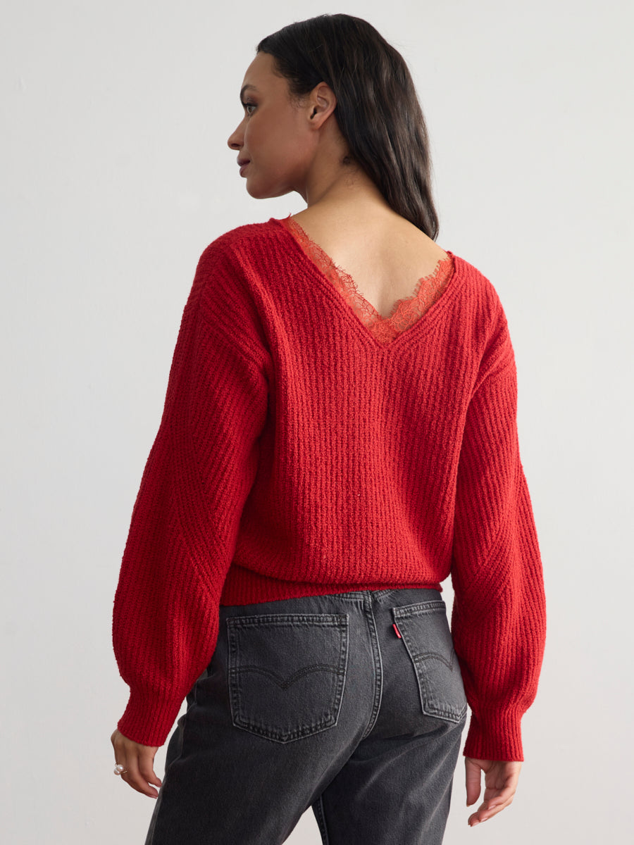 LACE V-NECK PULLOVER