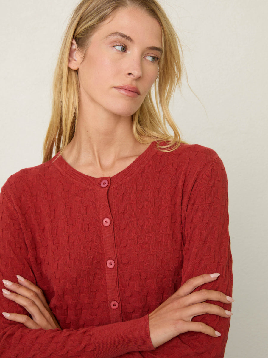 A perennial favorite at MOL, this cotton cardigan is the go-to layer season after season. Crafted with refined stitch detailing and an Italian origami knit, it strikes the perfect balance of softness and structure. Spun in Italy from fine Egyptian Mako cotton yarns—renowned for their long-staple strength, smoothness, and breathability—this lightweight, textural layer pairs effortlessly with everything from denim to dresses.