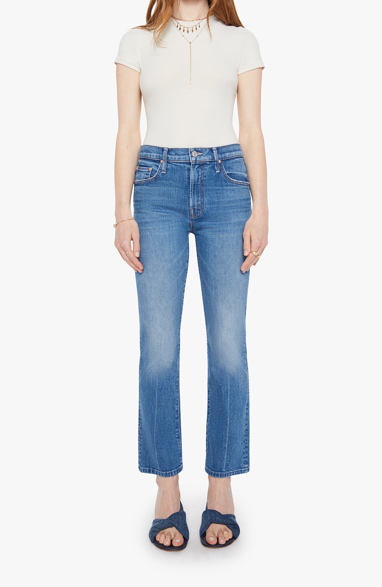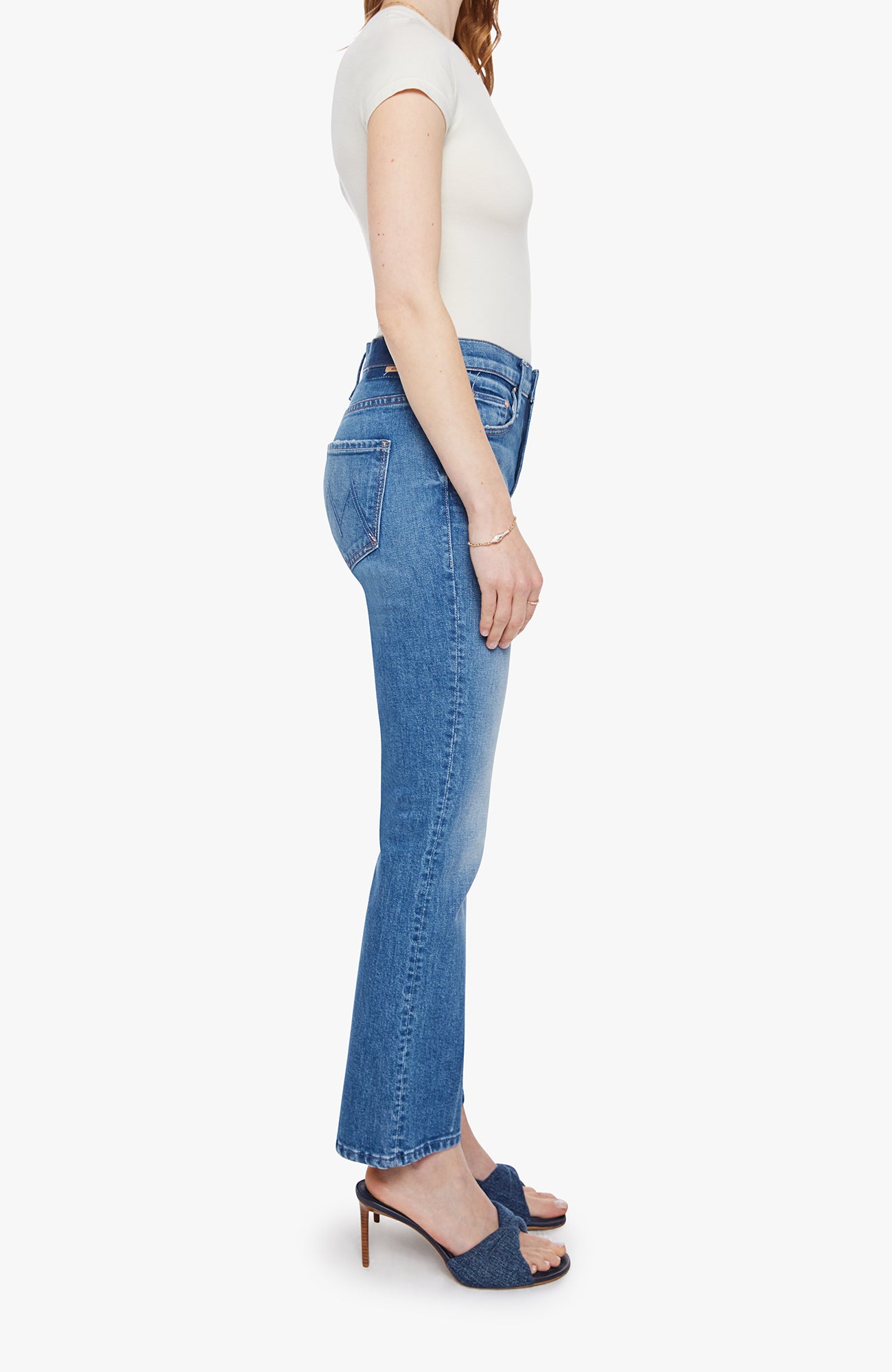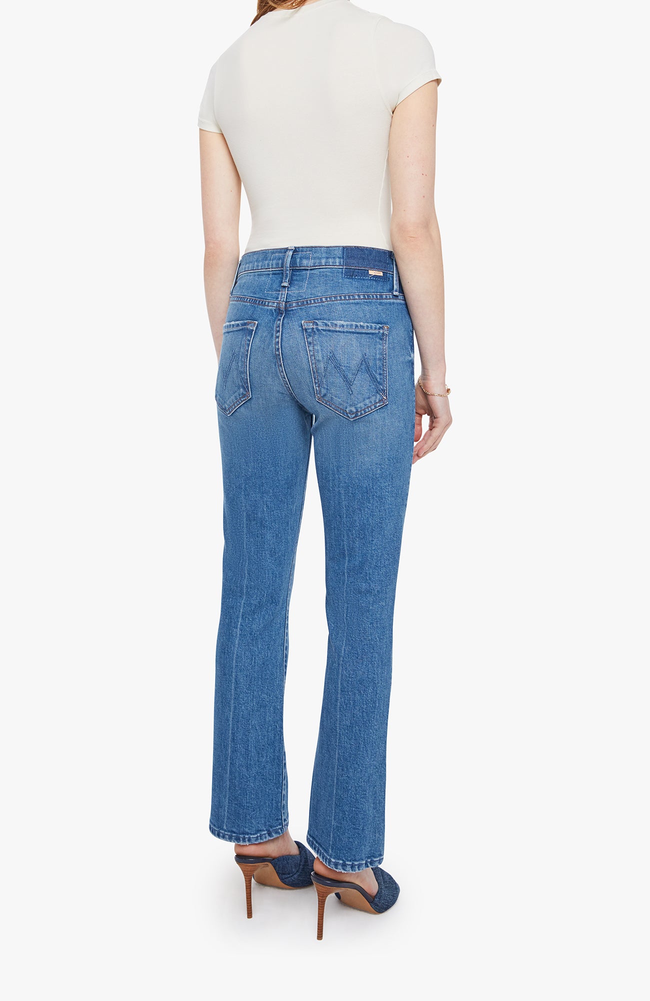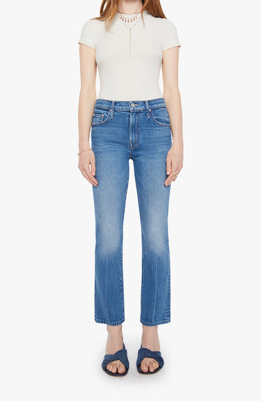Flying high never goes out of style. This iconic Mother Denim high-rise bootcut jean is designed to flatter and support, with a comfortable rise that smooths the waist and a timeless bootcut leg that balances the silhouette beautifully. The ankle-length inseam offers a modern, tailored feel that works just as well with flats as it does with a low heel.