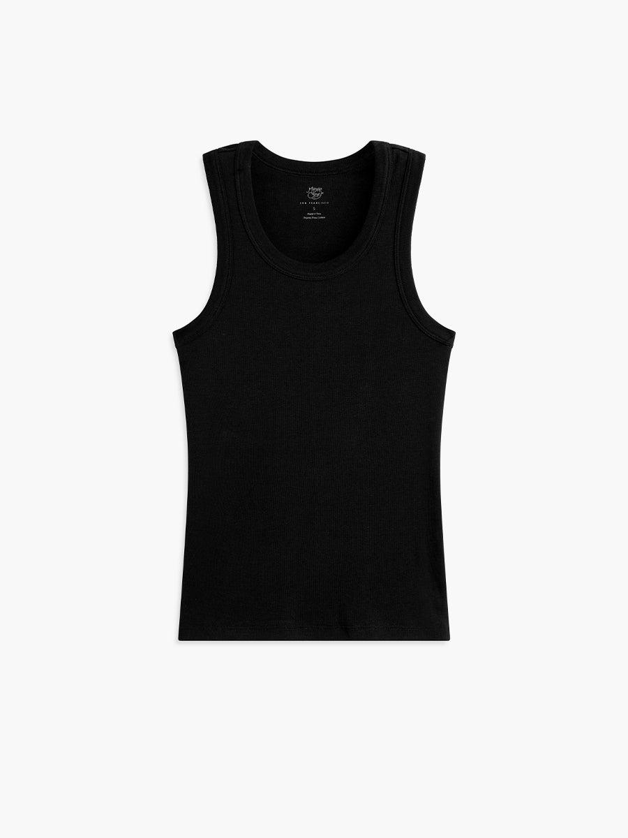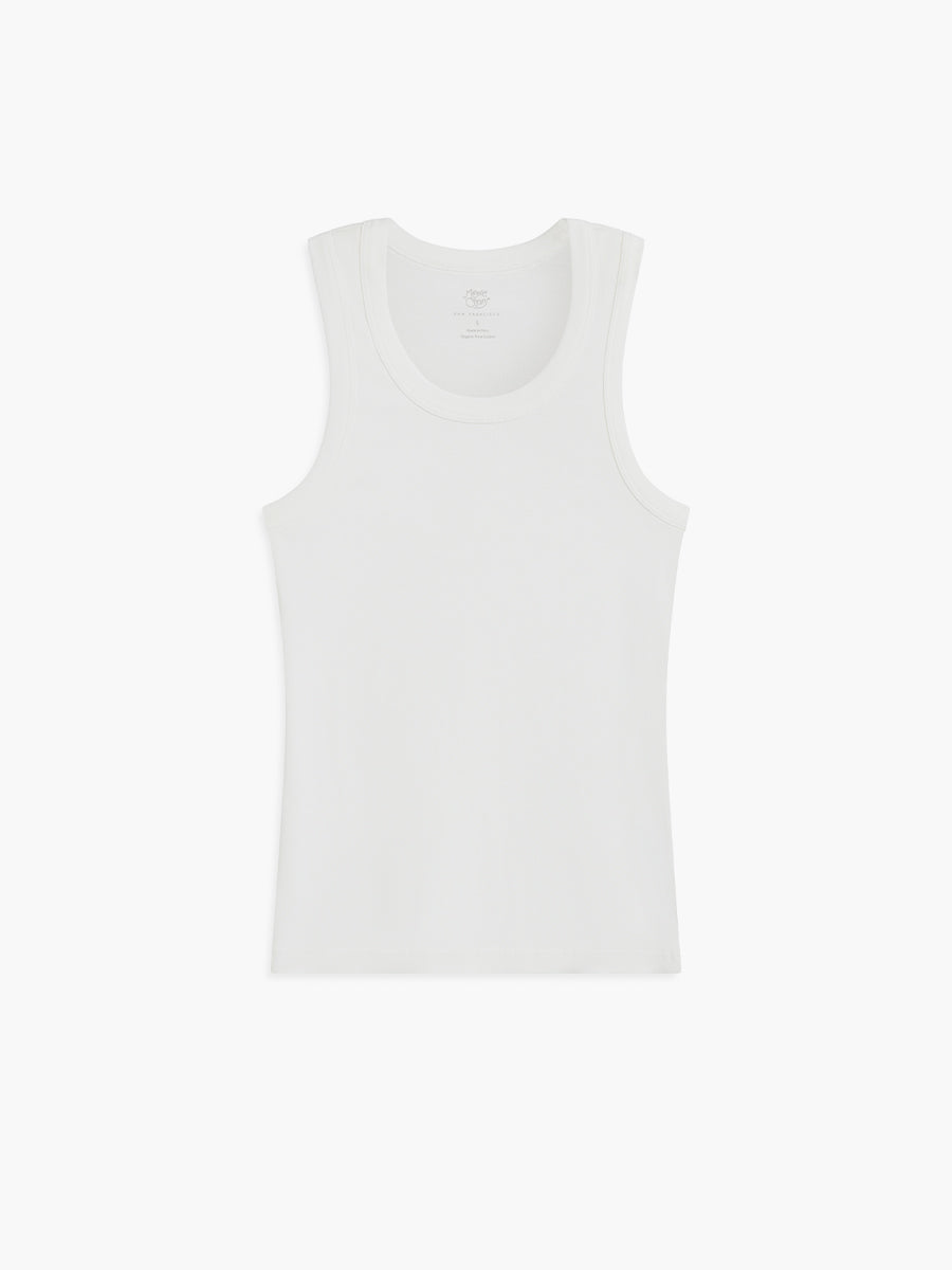 Our core tank is crafted from organic Pima cotton rib, offering the same luxurious feel and practicality as our signature tees—only lighter and more breathable for warm weather or effortless layering.