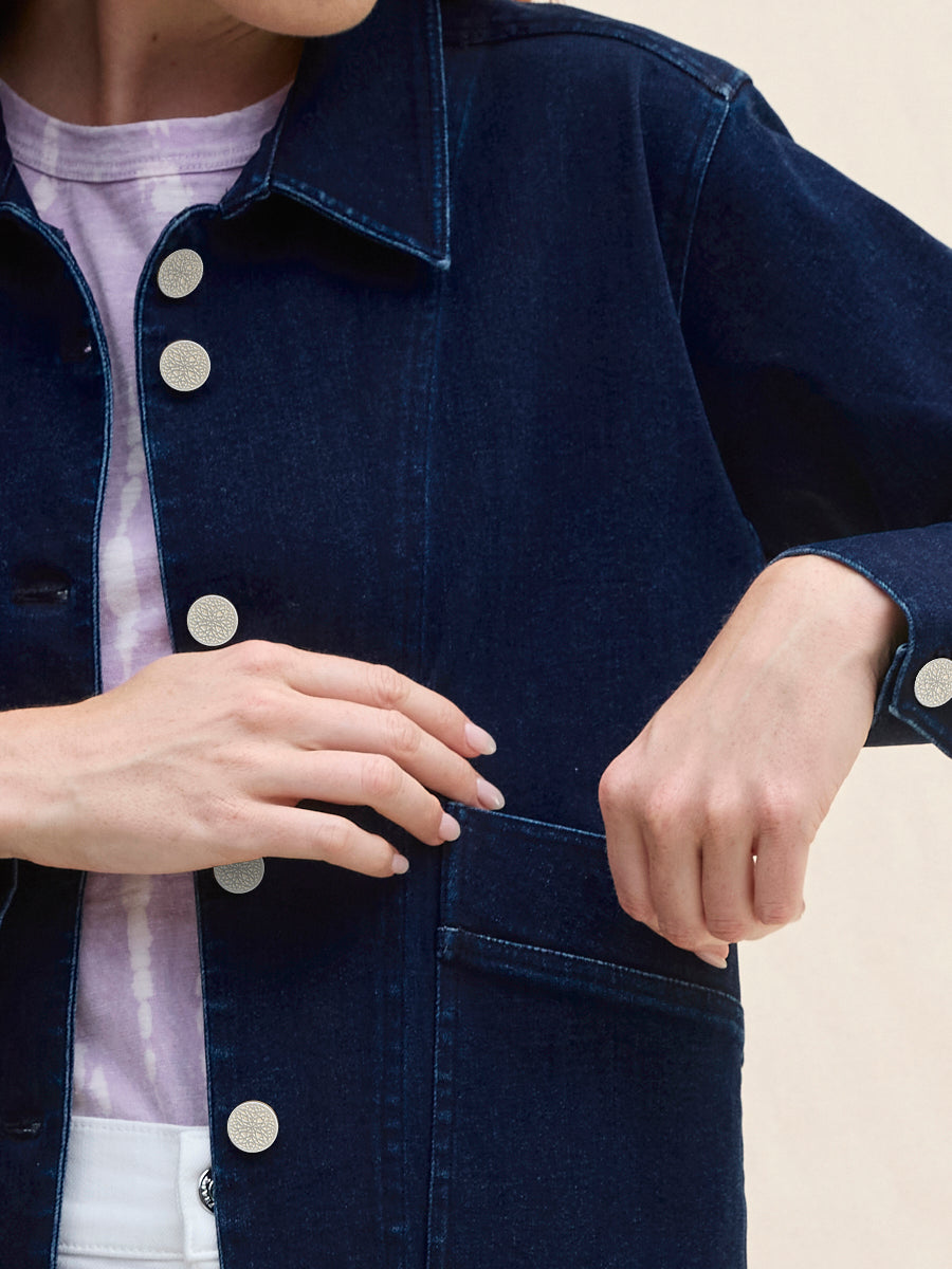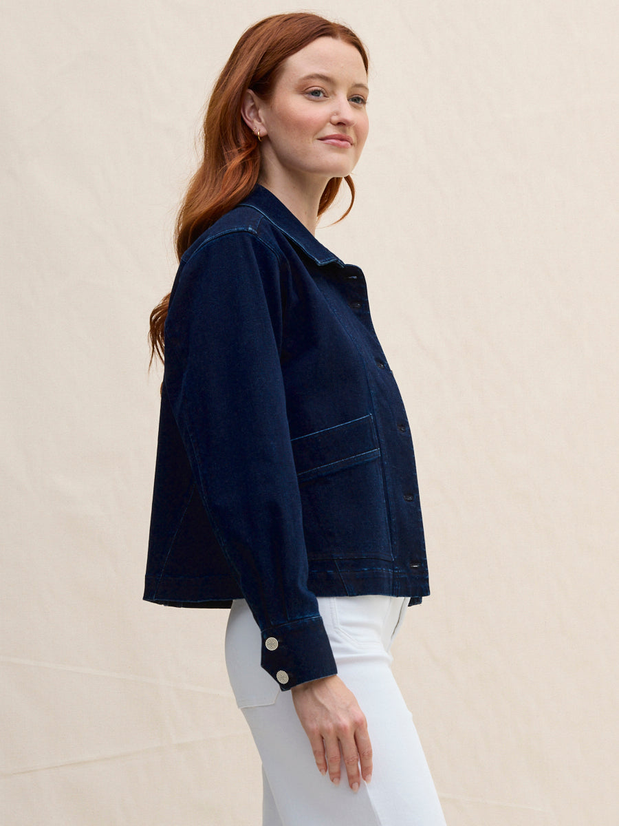 After many rounds of refinement, we created the ideal four-season topper — meet Alma — equal parts polished workwear and French gamine, with a touch of California ease. Thoughtfully designed front pockets offer both side and top entry, keeping your essentials close at hand. Crafted from soft stretch cotton twill, it’s easy to wash and wear and slips effortlessly over your favourite knits. Pair it with our Stretch Cotton Twill Cropped Pant for a modern, coordinated set.