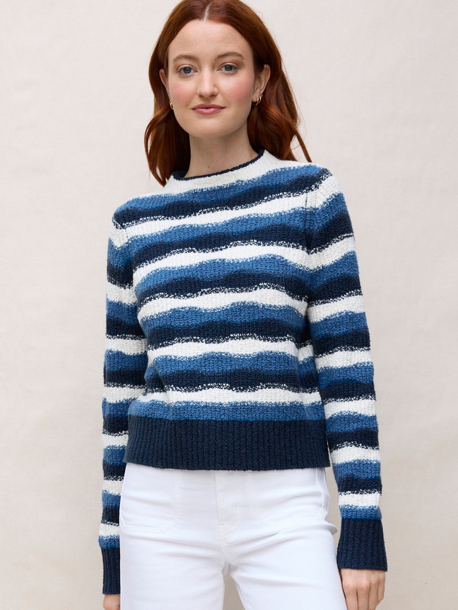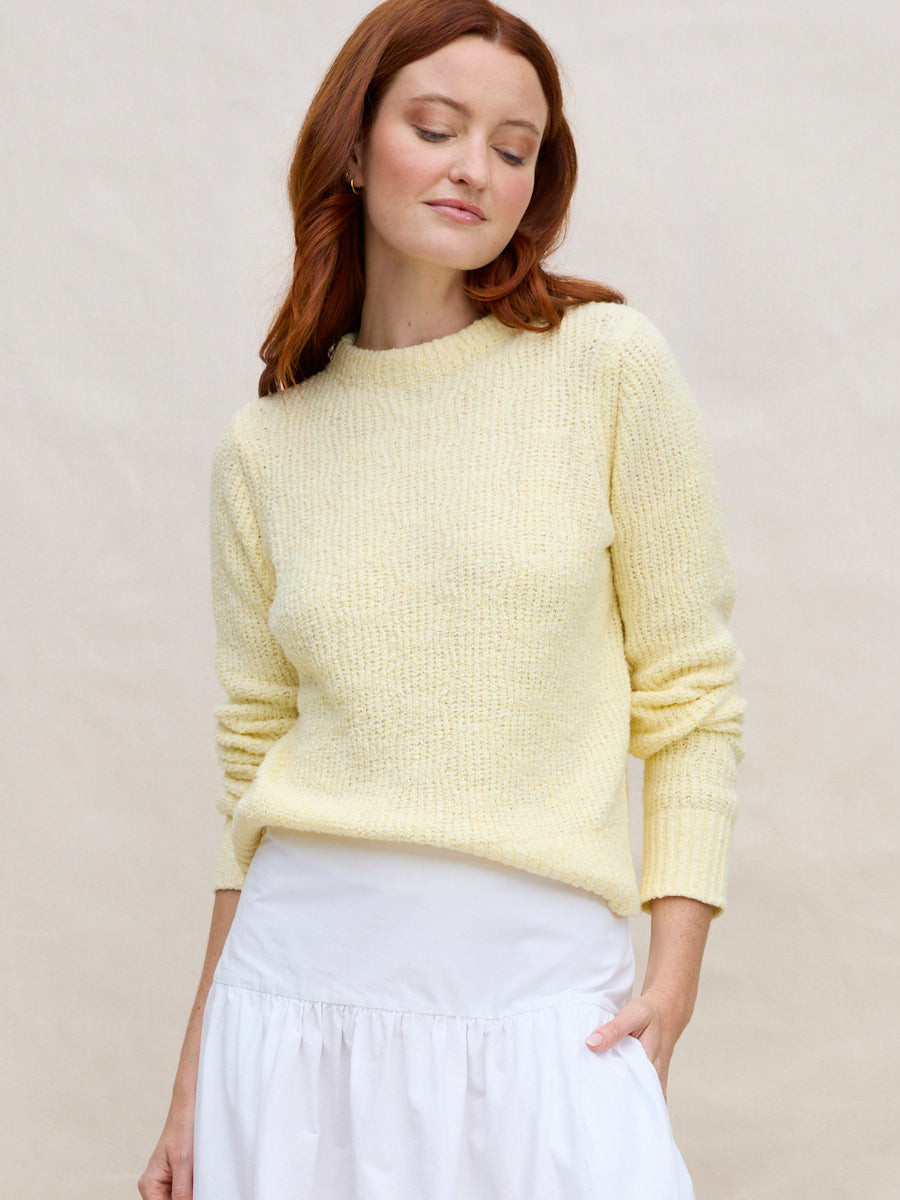 We heard your requests. Meet Lolita — a cropped, slightly more fitted take on our longtime bestseller, the Lola Pullover. The shorter proportion pairs effortlessly with high-waisted styles, like our Paige Pant. Knitted from our fan-favorite organic cotton-blend bouclé yarn, it’s cozy yet incredibly soft and breathable. Available in classic solids as well as a stylish wavy stripe pattern created in our design studio.