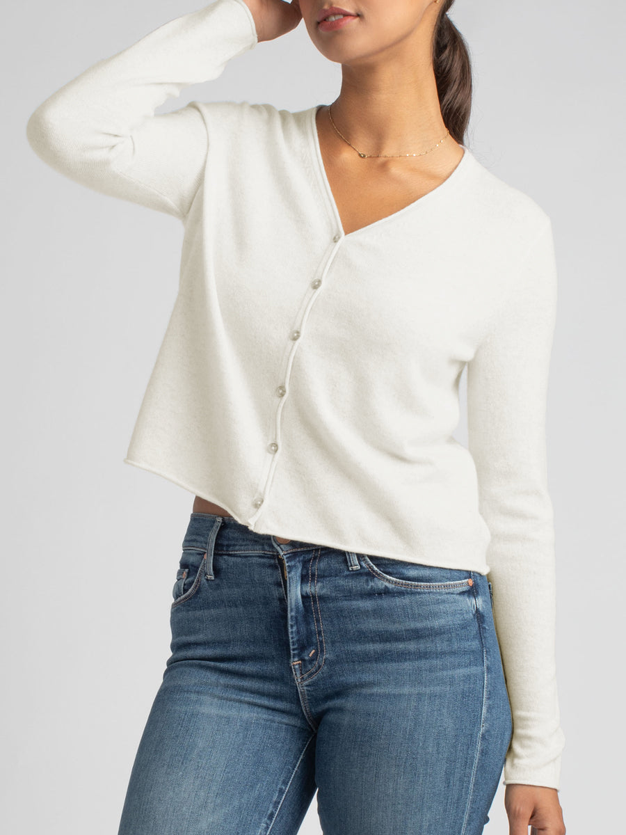 The Cashmere Vee Cardigan is crafted from 100% cashmere in a finely knit construction, offering a beautifully lightweight feel with exceptional softness. Knit at a refined 12-gauge, it delivers an elegant drape and smooth finish, perfect for layering or wearing on its own. Designed with a fit that skims the silhouette with understated sophistication and everyday comfort.
