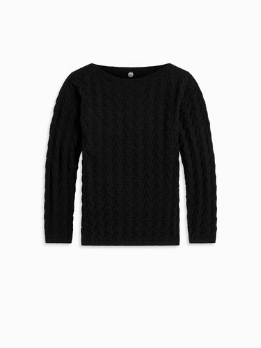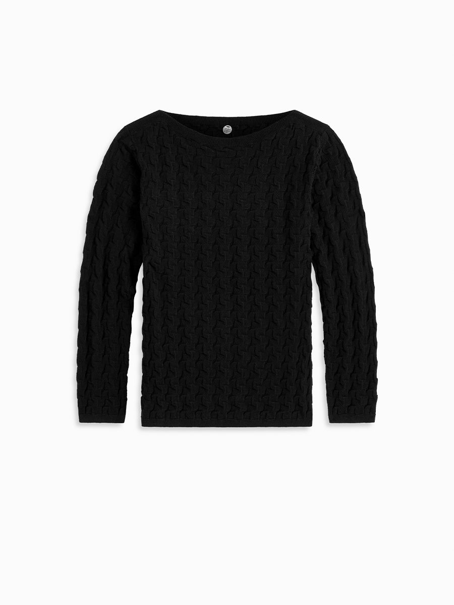 A refined knit with a softly graphic edge. Crafted from smooth, Italian cotton yarns, it has a clean, luminous finish that highlights its unique construction. The boatneck neckline offers a flattering, open shape across the collarbone, while the geometric, retro-inspired stitch brings texture and visual interest throughout. Light and breathable with a distinctive point of view, it’s an easy way to add polish and personality to everyday styling.