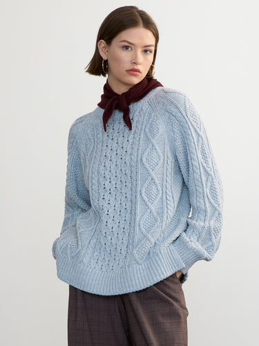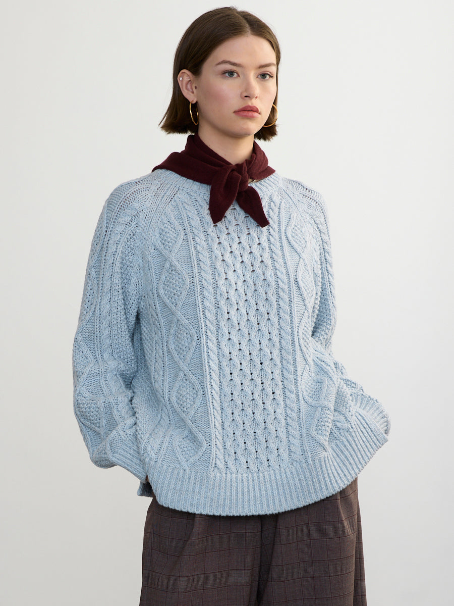 The Return of the Deidre — Fisherman’s Wife Perfection! Inspired by Irish fishermen who passed them down as symbols of safety and prosperity. Knitted from breathable cotton-blend yarn with four unique stitch types, it offers lasting comfort and a lived-in feel—more than a garment, it’s a legacy lovingly handed down.