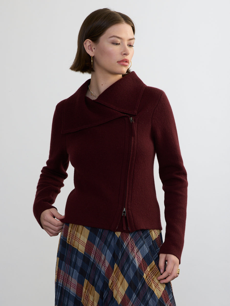 Timeless with an edge, St. Bridget is knitted from the highest-grade cashmere available, with a stunning 15.5-micron count, meaning it is ultrafine and more lustrous than others you'll find on the market. This wear-everywhere asymmetric moto jacket is doubly luxe, featuring a two-toned, plaited knit and a functional two-way zipper. Our cashmere is produced in factories committed to sustainability, animal welfare, and social measures-so you can feel good about your purchase.